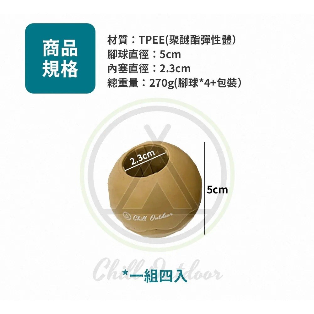 chill outdoor 加大防滑腳球 椅腳套 四入 月亮椅適用 椅套 椅腳 椅墊 露營黑色(一組4顆)|沙色(一組4顆)|軍綠(一組4顆)Camping & Hiking小玩家露營生活旗艦館
