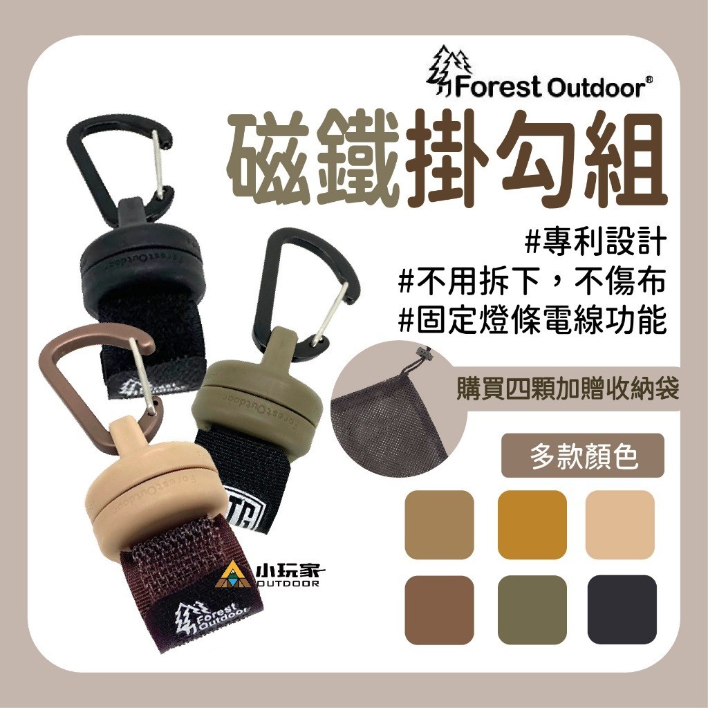 Forest Outdoor 第二代免拆可滑入 磁鐵掛勾組 10色可選 露營 野營 強力磁鐵魔鬼氈 (四入贈網袋)黑色|棕色|奶茶|軍綠|焦糖|狼棕Camping & Hiking小玩家露營生活旗艦館