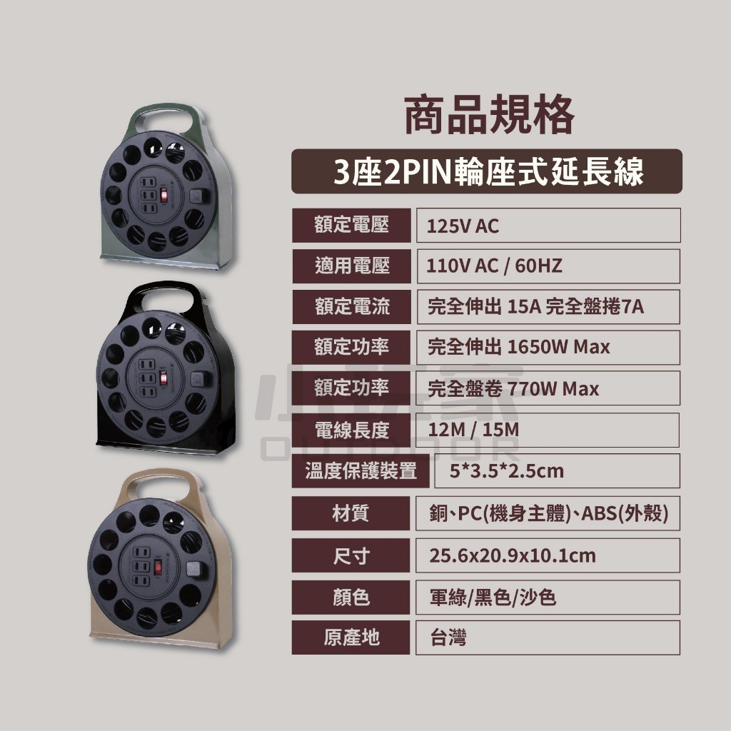 ADAM 輪座式延長線 / 多用途輪座式延長線 延長線 動力線 10.5m 12m 15m 輪座式(12M) 3座2PIN輪座式延長線,沙色|(12M) 3座2PIN輪座式延長線,黑色|(10.5M) 4座3PIN輪座式延長線,軍綠|(12M) 3座2PIN輪座式延長線,軍綠|(15M) 3座2PIN輪座式延長線,黑色|(10.5M) 4座3PIN輪座式延長線,沙色|(10.5M) 4座3PIN輪座式延長線,黑色|(15M) 3座2PIN輪座式延長線,軍綠|(15M) 3座2PIN輪座式延長線,沙色Camping & Hiking小玩家露營生活旗艦館