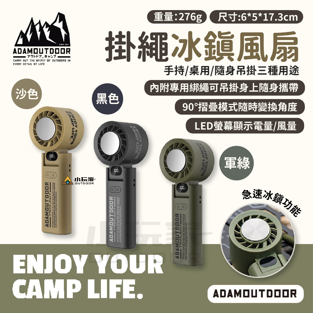 ADAMOUTDOOR|隨身掛繩 機能冰鎮風扇 掛繩 冰鎮風扇 風扇 手持風扇 桌扇 冰鎮黑色|沙色|軍綠USB & Mobile Fans小玩家露營生活旗艦館