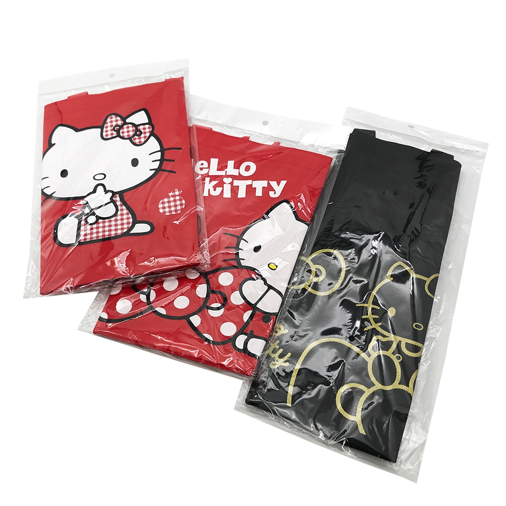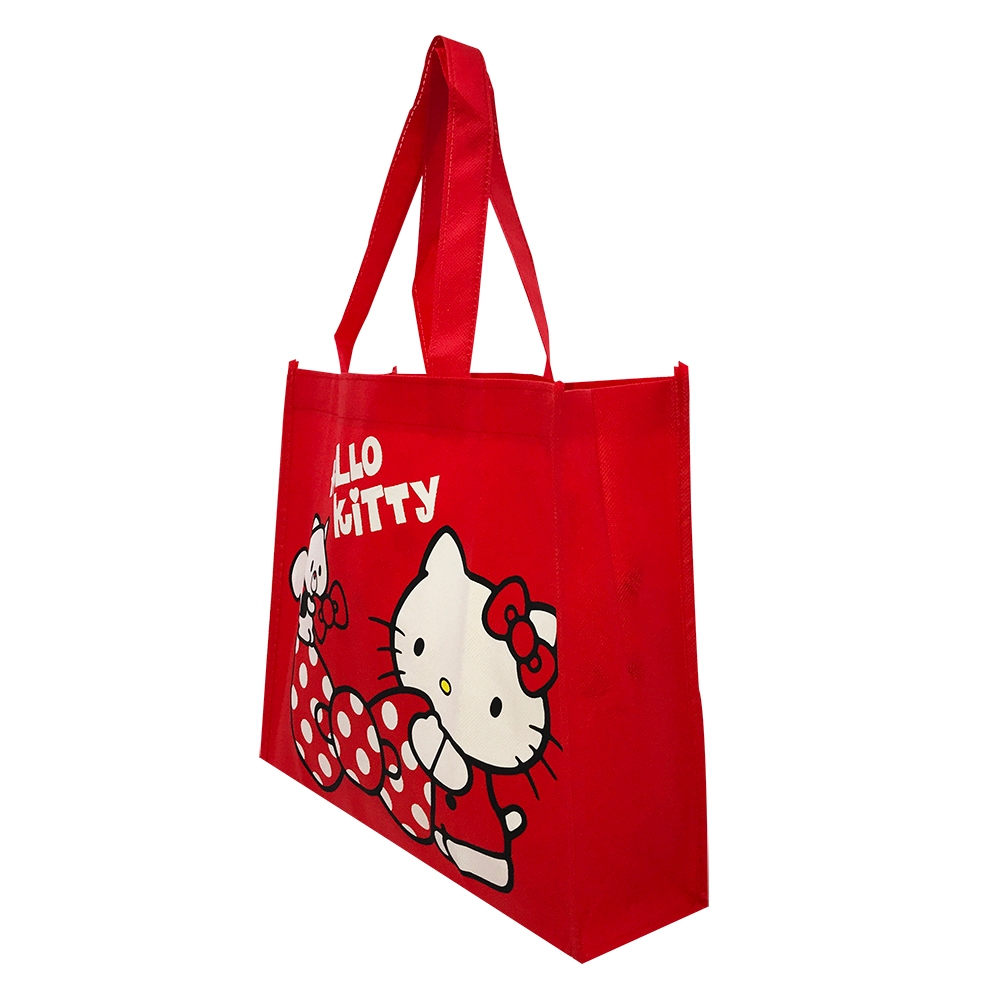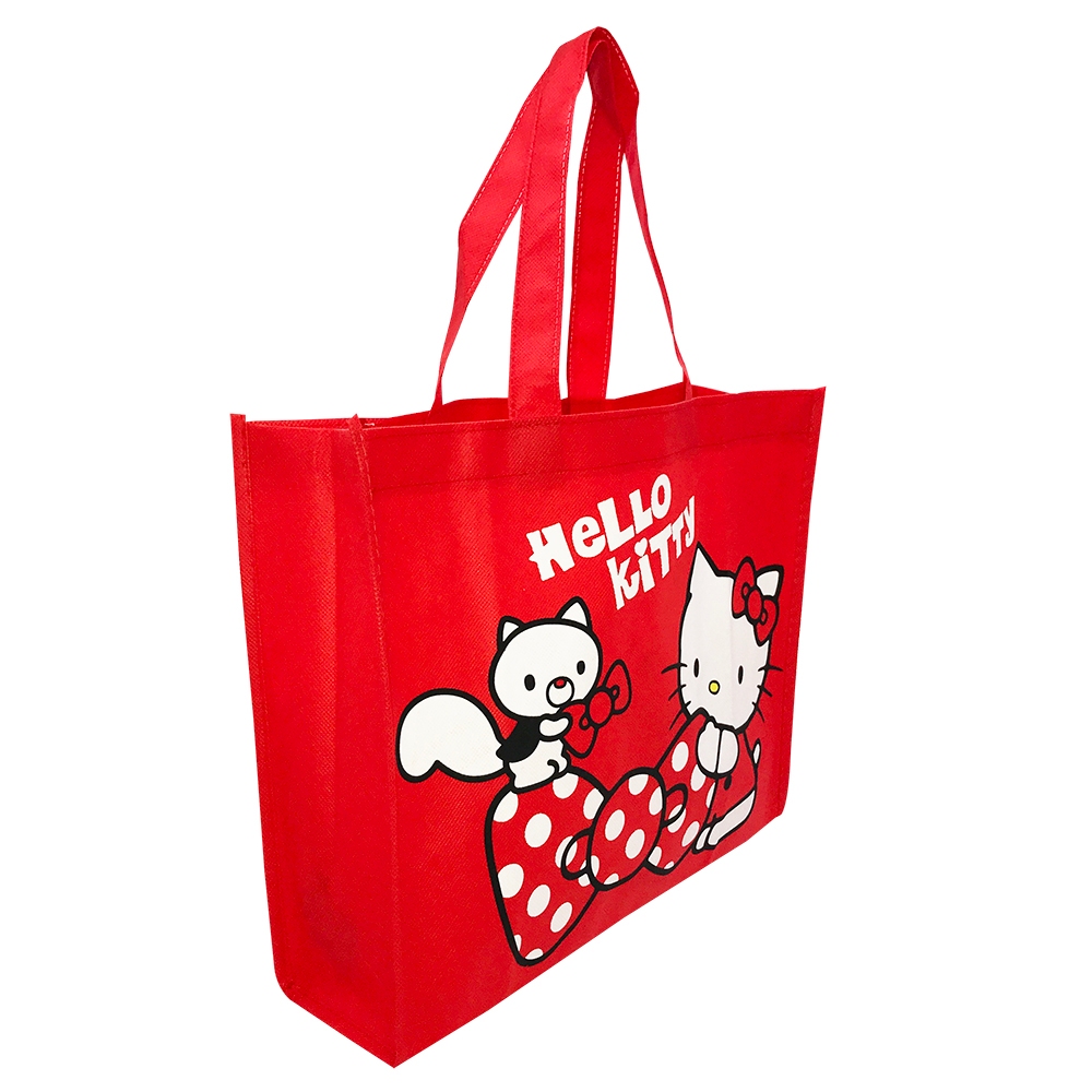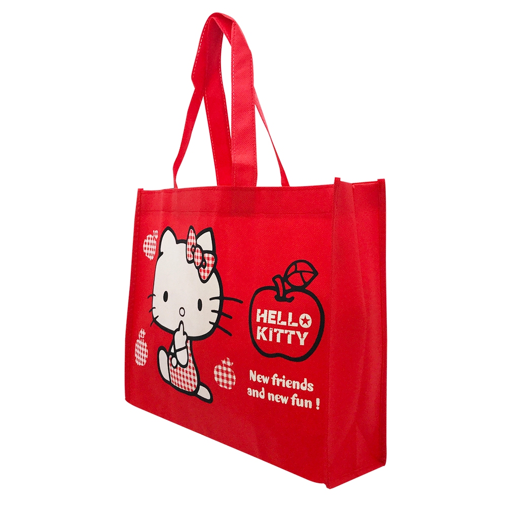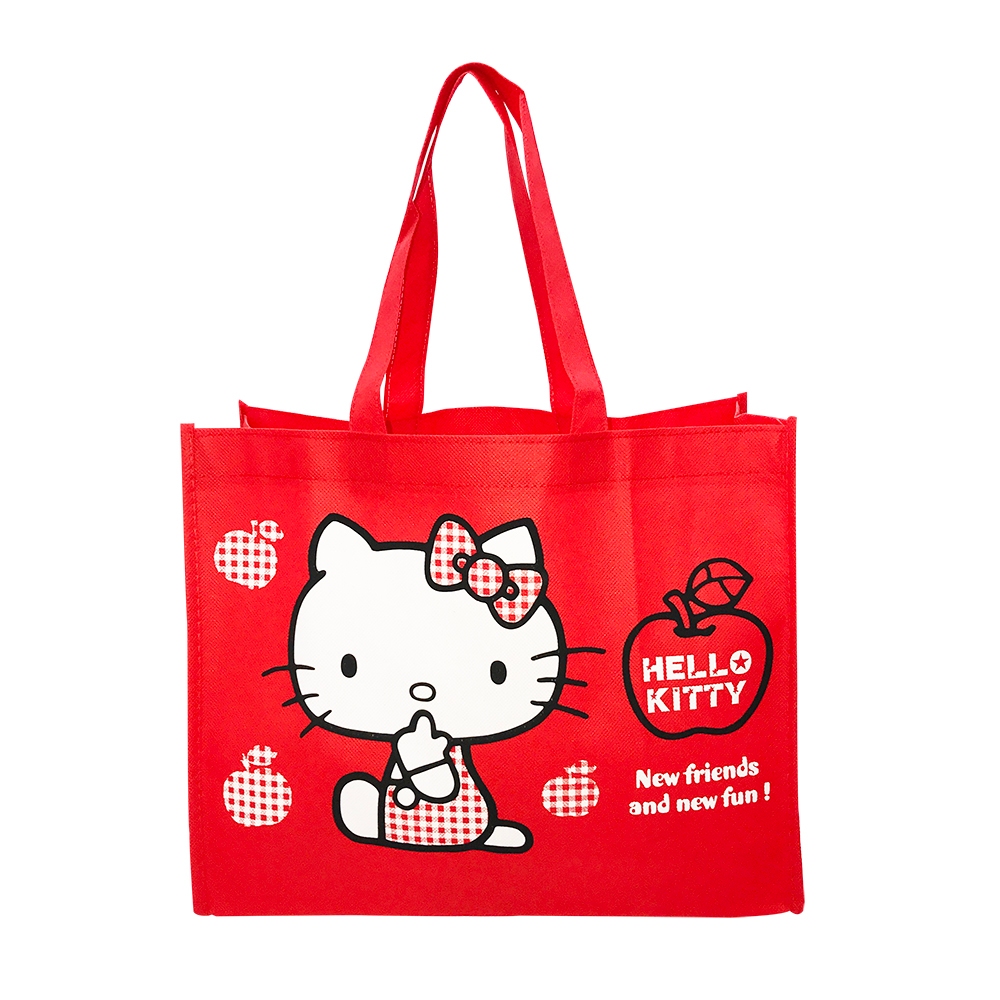 Hello Kitty無紡布購物袋-直/橫【台灣正版現貨】直-黑|橫-紅-蝴蝶結|橫-紅-蘋果Foldable Bags小朋友上學趣