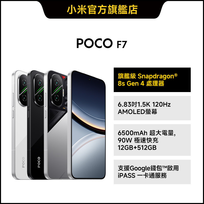 POCO F7 12GB+512GB【小米官方旗艦店】小米 8sG4 1.5K 120Hz IP68 6500超大電量黑色|銀色|白色小米官方旗艦店