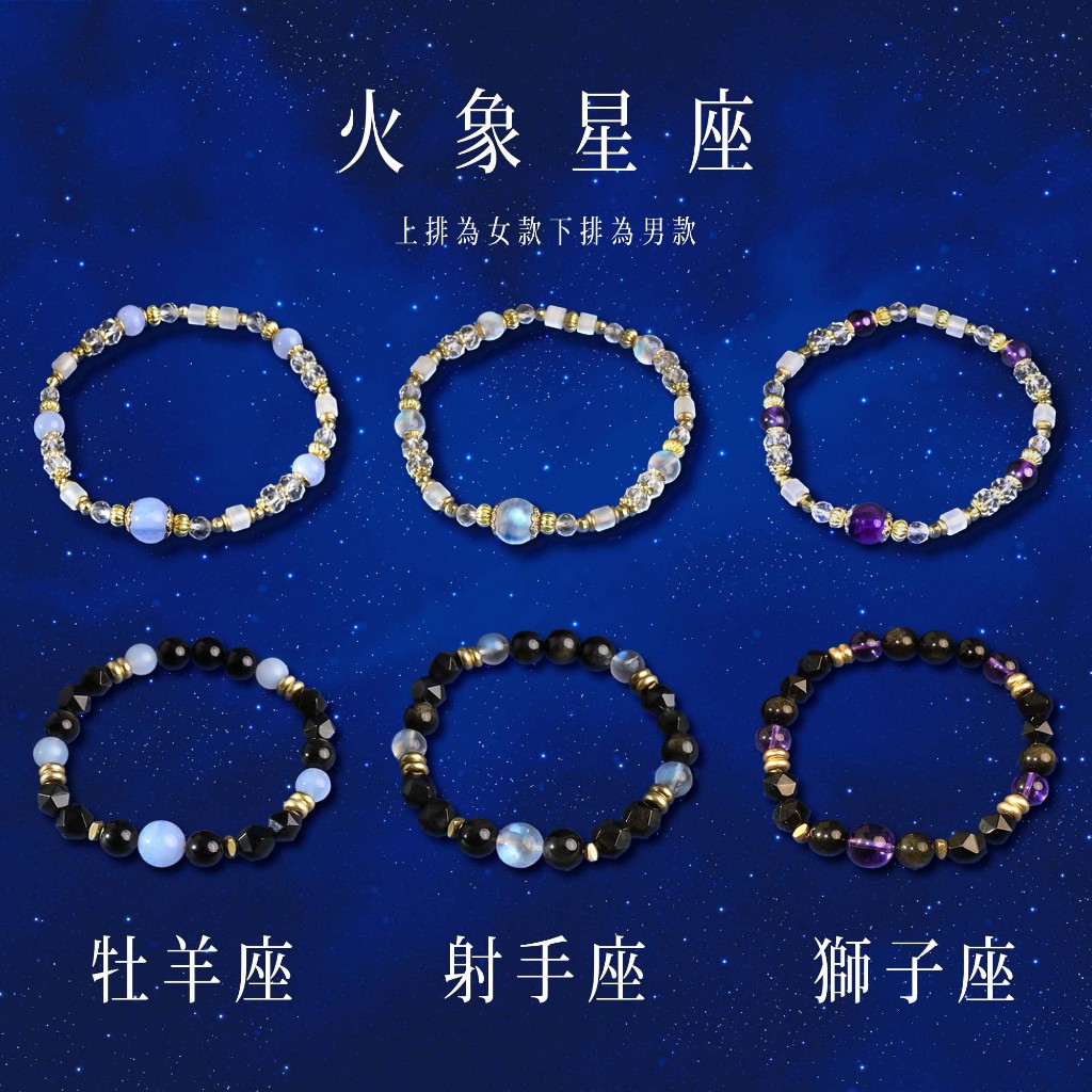 12星座幸運水晶手鍊 | 男女款 S08-S19 鈦晶 白水晶 紫水晶 月 拉長石 黃水晶 送禮 生日禮物 交換禮物