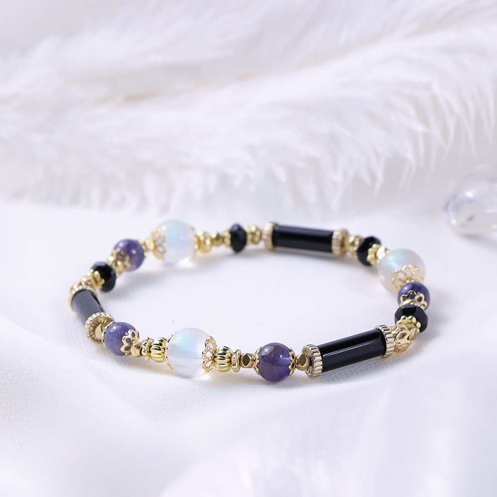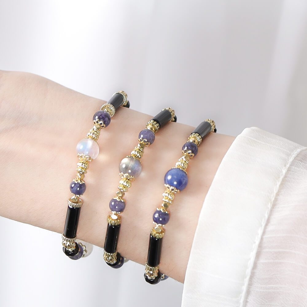 12星座幸運水晶手鍊 | 男女款 S08-S19 鈦晶 白水晶 紫水晶 月 拉長石 黃水晶 送禮 生日禮物 交換禮物