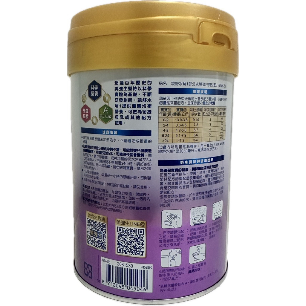美強生 幼兒親舒水解 3號 800g親舒3號 (新包裝)Milk Formula小牛寶寶的窩