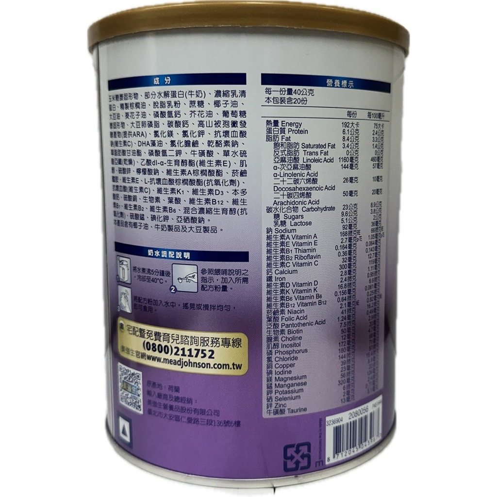 美強生智睿1號850G 超商1筆4罐美強生智睿1號850G 超商1筆4罐Milk Formula小牛寶寶的窩