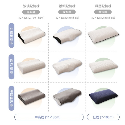 • 【小日常寢居】人體工學記憶枕/蝶型記憶枕/麵包型記憶枕 吸濕排汗 針織緹花 3D立體泡泡絨-九款任選(超取限4顆)隔日配