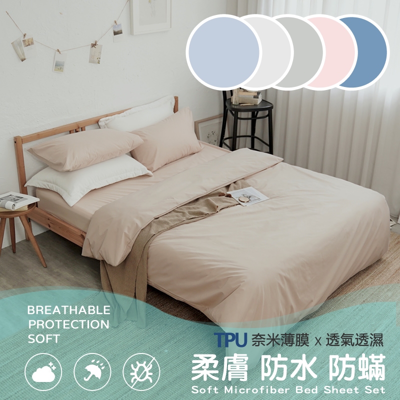 • 【小日常寢居】清新素色100%防水防蹣6×7尺標準雙人薄被套『多色任選』雙面防水180*210公分-台灣製 薄被單