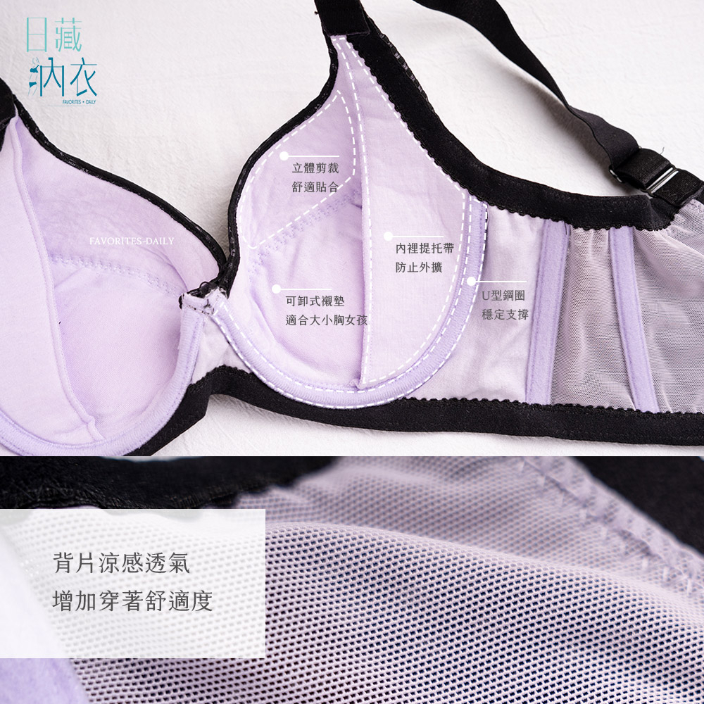• 【日藏內衣】MIT 時光序曲 提托大罩杯素面涼感內衣 學生內衣 (黑)CDEFG 118