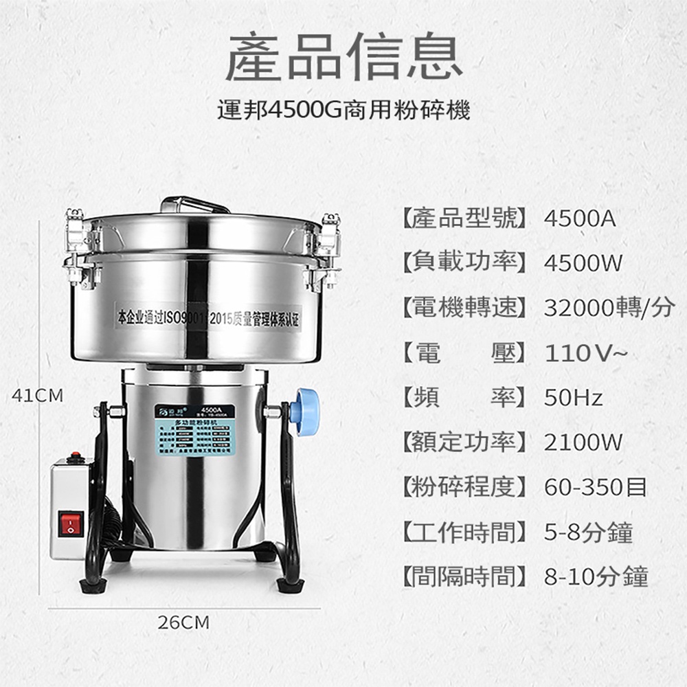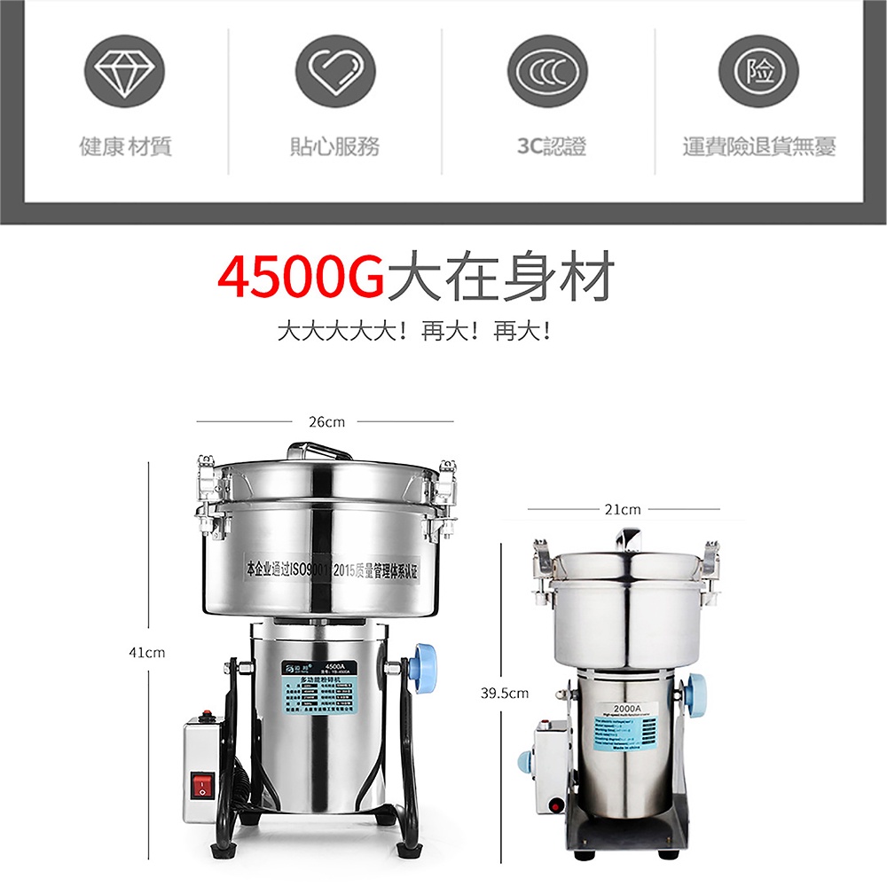 110V研磨機 4500克粉碎機 商用藥材打粉機 超細研磨機 五谷雜糧磨粉機 打碎機 幹磨機 電動研磨機 電動打磨機4500克研磨機Coffee Machines & Accessories小山品牌旗艦店
