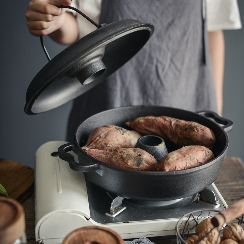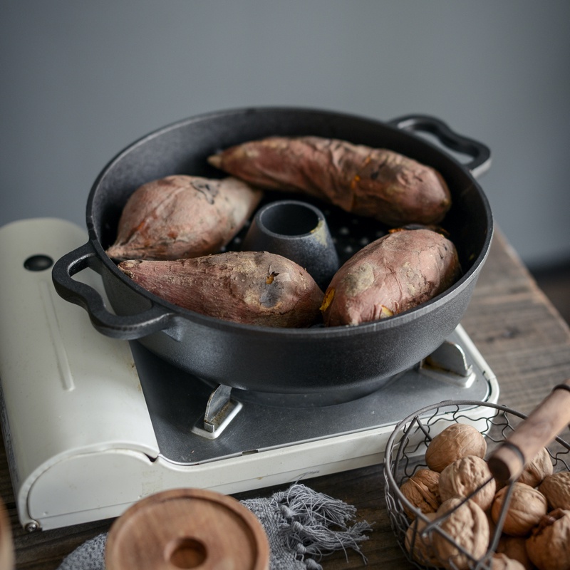 【小山】鑄鐵烤紅薯鍋家用加厚烤地瓜燒烤土豆玉米機多功能烤鍋烤紅薯神器新款22cm煙道設計隔絕燃氣|新款25cm煙道設計隔絕燃氣|新款28cm煙道設計隔絕燃氣Bakewares & Decorations小山品牌旗艦店