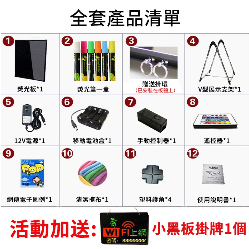 【小山】led熒光板 寫字板 光板 發光板 黑板 手寫板 廣告板 廣告牌 書寫板 LED寫字板 招牌板 招牌廣告板熒光板60×80公分【2個】|熒光板60×80公分Writing Boards & Board Stands小山品牌旗艦店