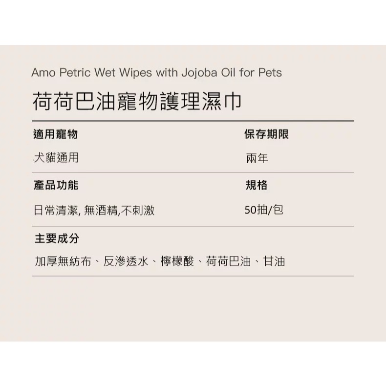 Amo Petric 荷荷巴油護理濕巾50抽【小小毛孩】Amo Petric 荷荷巴油護理濕巾50抽【小小毛孩】Hair Care小小毛孩 Litte poppet