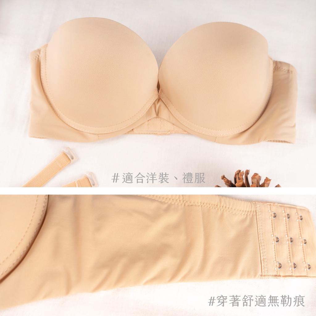 • 【日藏內衣】台灣製造 禮服洋裝必備 半罩式肩帶可拆 無痕內衣 B (黑、膚) 776