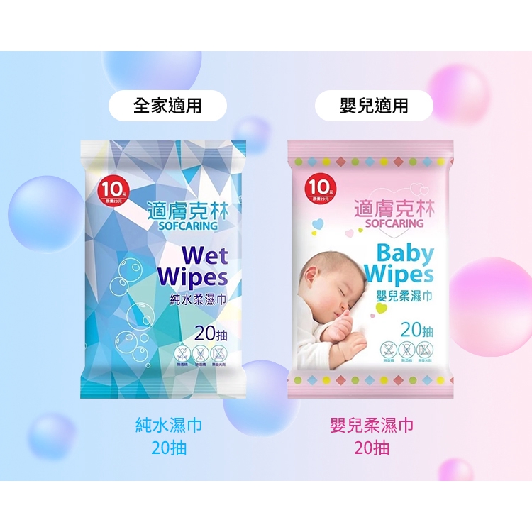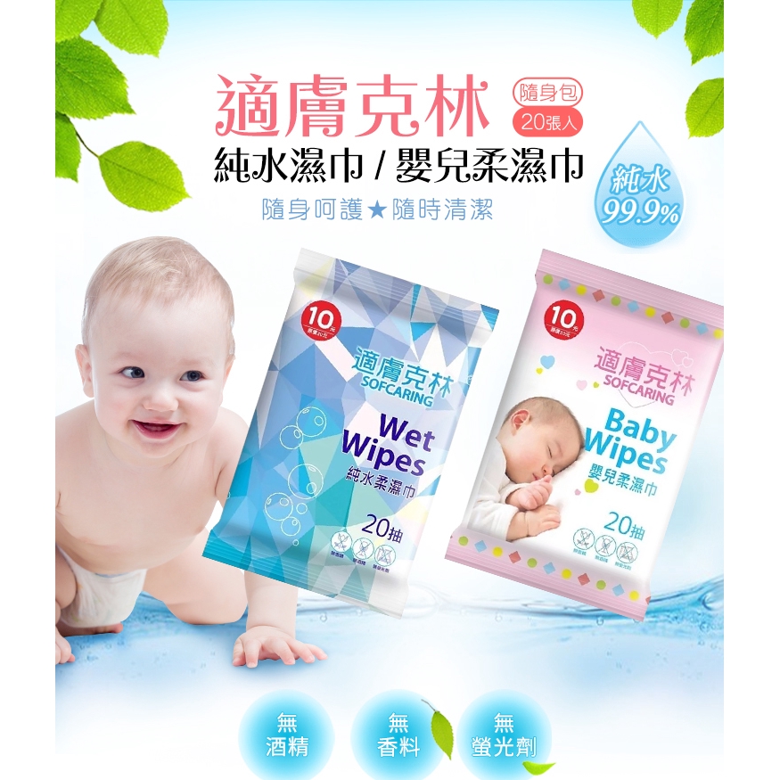 適膚克林 純水濕巾/嬰兒柔濕巾 20張入(隨身包) 【小三美日】D095562純水濕巾|嬰兒柔濕巾Wipes小三美日