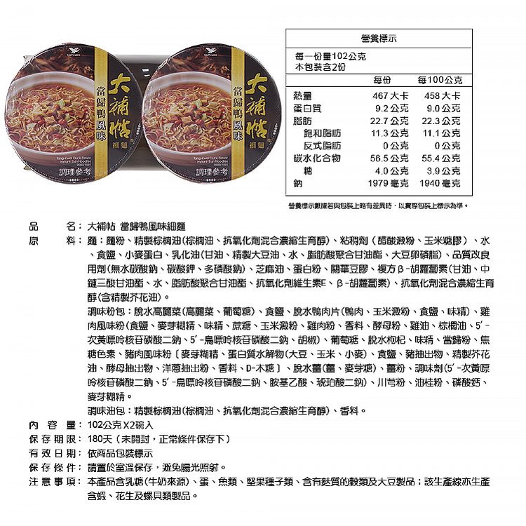 統一 大補帖(麻油雞風味/當歸鴨風味細麵)碗裝2入 款式可選【小三美日】 DS008057麻油雞風味(105g)|當歸鴨風味(102g)Instant Noodles小三美日