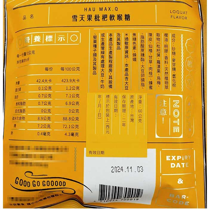統一製菓 雪天果枇杷軟喉糖(60g)【小三美日】DS011791單一款式Sweets & Candy小三美日