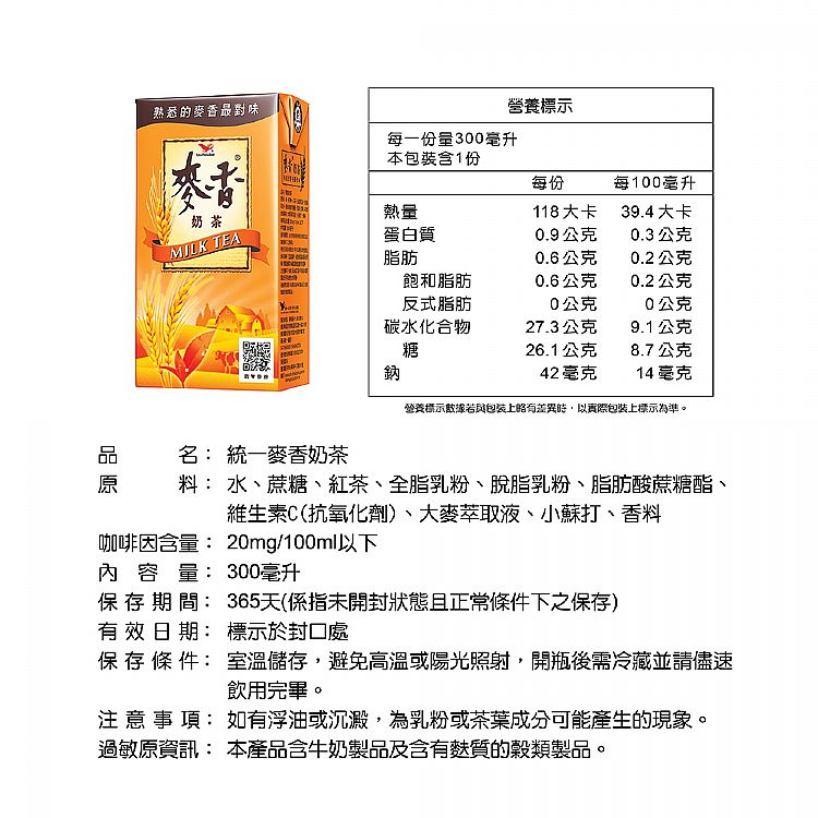 統一 麥香紅茶/奶茶/綠茶300ml(單入) 款式可選 飲料 即飲 鋁箔包 熟悉的麥香最對味【小三美日】DS013477紅茶|奶茶|綠茶Tea & Tea Bags小三美日