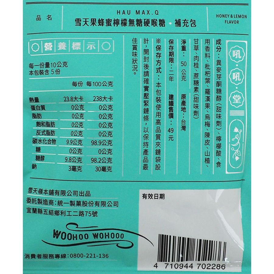 統一製菓 雪天果無糖硬喉糖50g 喉糖 薄荷糖 潤喉 無糖 無糖薄荷糖 無糖喉糖 枇杷喉糖【小三美日】DS011790蜂蜜檸檬|雪鹽檸檬|岩鹽枇杷|原野薄荷|青梅精Sweets & Candy小三美日