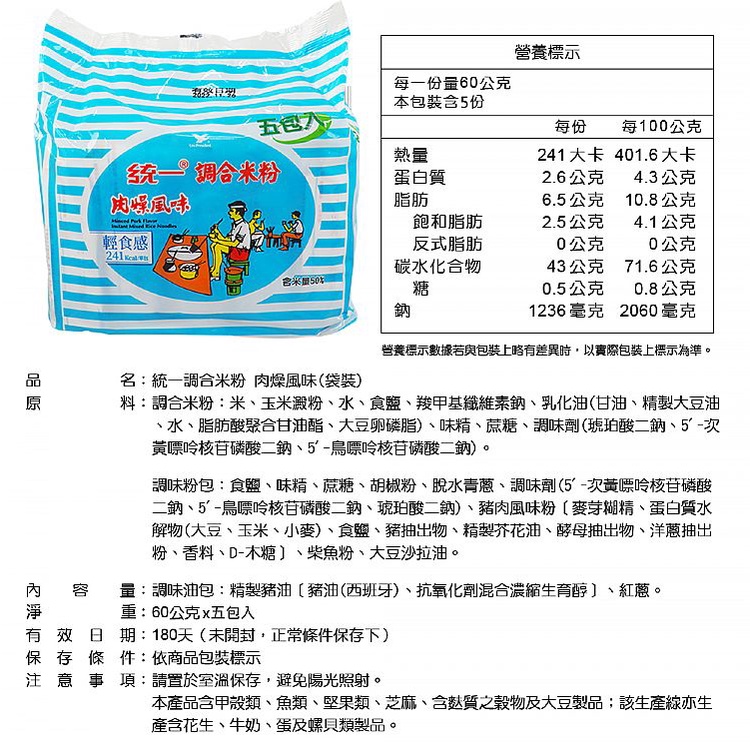 統一 調合米粉(肉燥風味)60g(袋裝5入)【小三美日】 DS008027單一規格Instant Noodles小三美日
