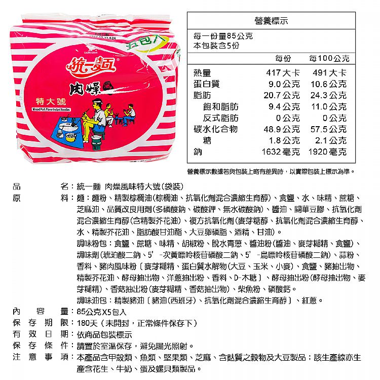 統一 統一麵(肉燥特大號/蔥燒牛肉/鮮蝦/肉骨茶風味)袋裝5入 款式可選【小三美日】 DS008026肉燥風味特大號(85g)|蔥燒牛肉風味(90g)|鮮蝦風味(83g)|肉骨茶風味(93g)Instant Noodles小三美日
