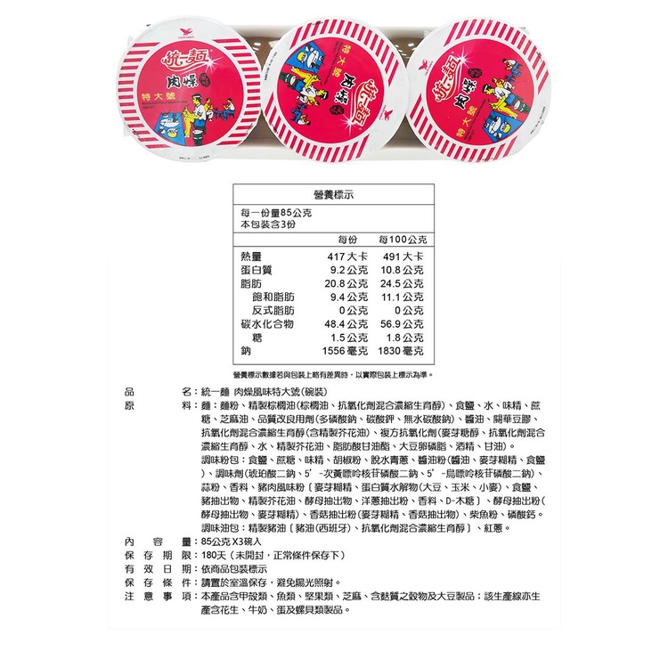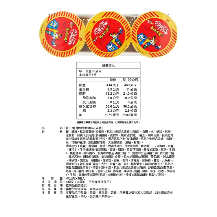統一 統一麵(肉燥特大號/蔥燒牛肉/鮮蝦/肉骨茶風味)碗裝3入 款式可選【小三美日】 DS008025鮮蝦風味(83g)|肉骨茶風味(93g)|肉燥風味特大號(85g)|蔥燒牛肉風味(90g)Instant Noodles小三美日