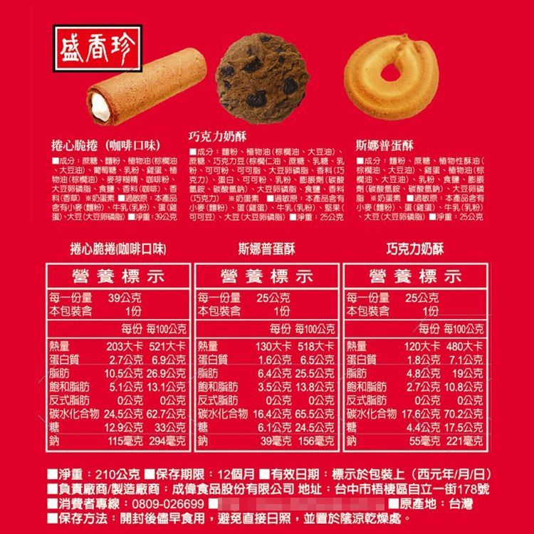 盛香珍 糕餅舖酥餅總匯 (210g) 綜合餅乾 煎餅 曲奇餅 捲心酥 威化夾心 餅乾 點心【小三美日】DS026059單一Biscuits, Cookies & Wafers小三美日