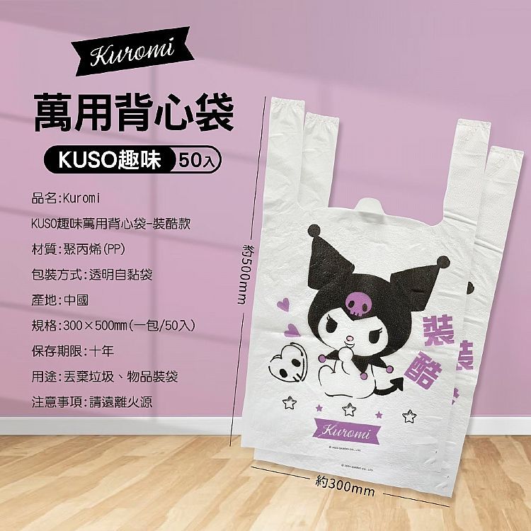 御衣坊 酷洛米KUROMI KUSO趣味萬用背心袋(裝酷款)50入/包 購物袋 環保袋 書袋【小三美日】DS023559單一Plastic Bags & Trash Bags小三美日