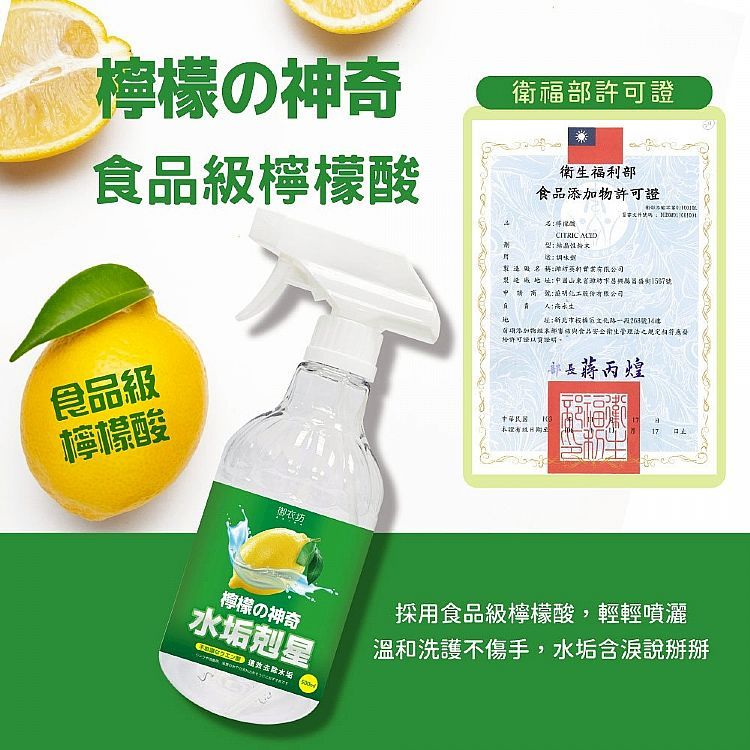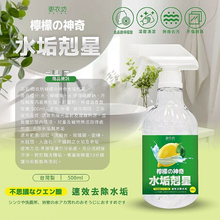 御衣坊 檸檬神奇水垢剋星 500ml 檸檬酸 水垢 除垢 去污 不傷手 不傷器具 即噴即用【小三美日】DS026577單一Cleaning Agents小三美日