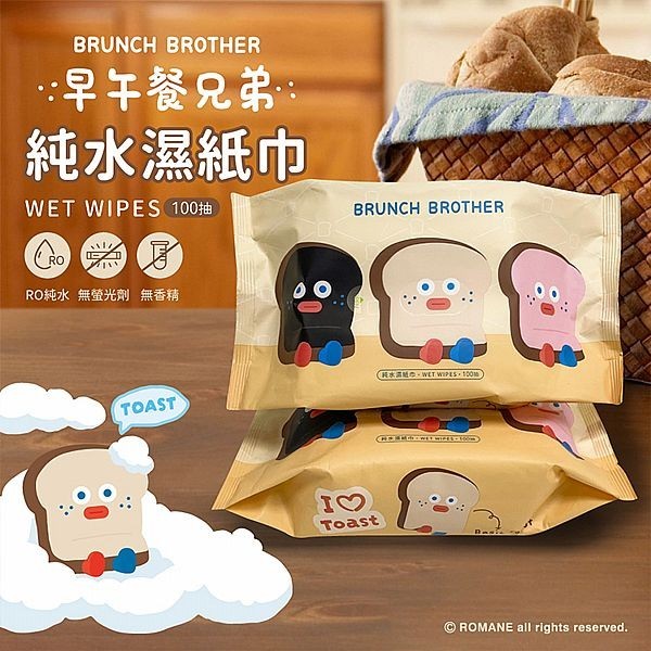 御衣坊 早午餐兄弟 純水 濕紙巾 (吐司款) 100抽 濕巾 溼紙巾 溼巾 無香精 無螢光【小三美日】DS026576單一Wipes小三美日