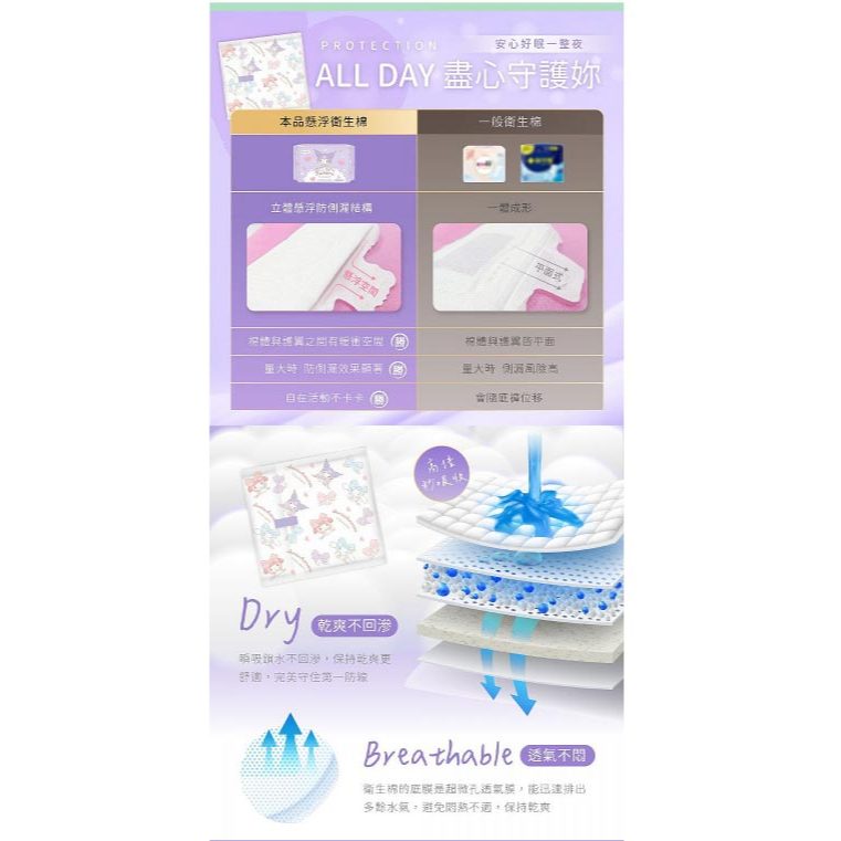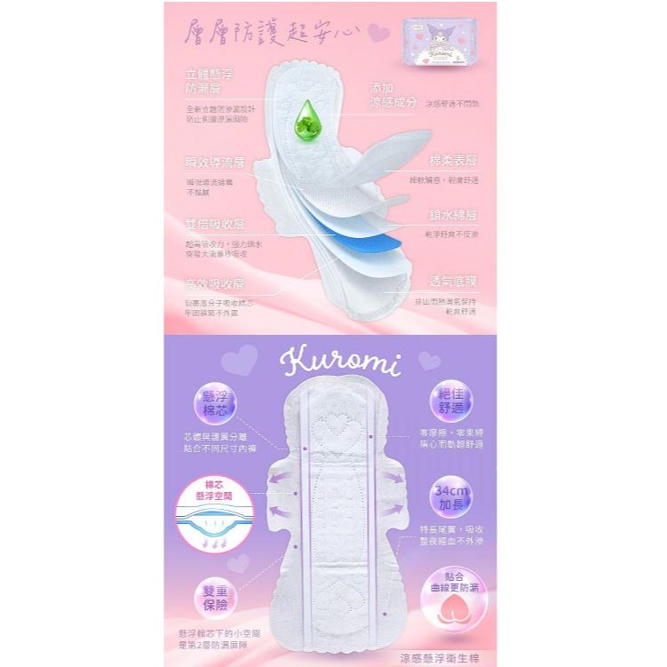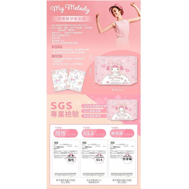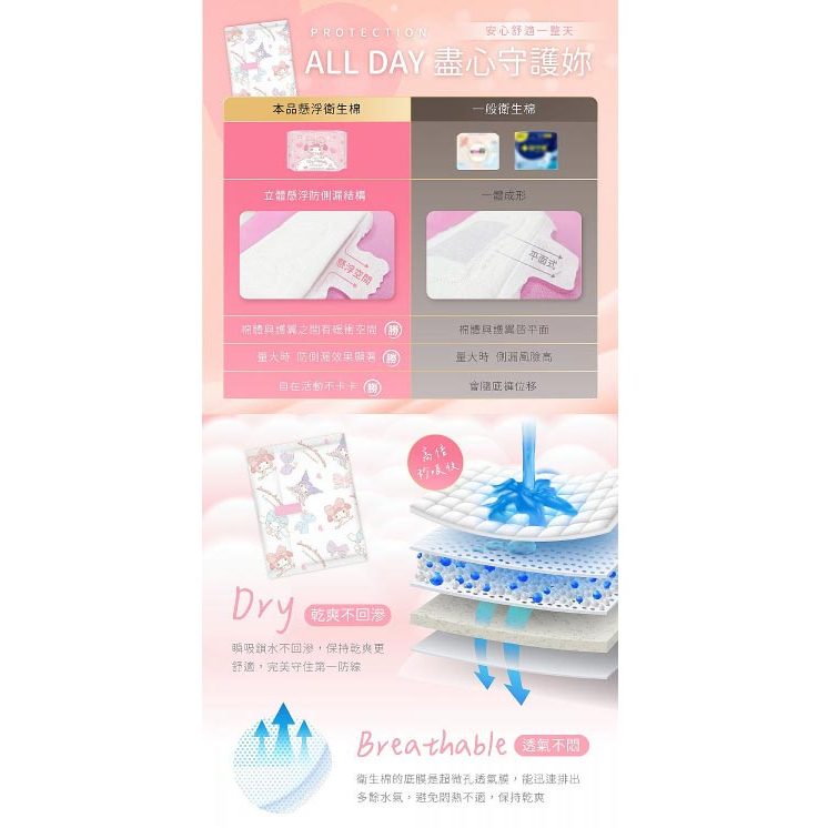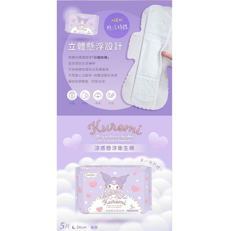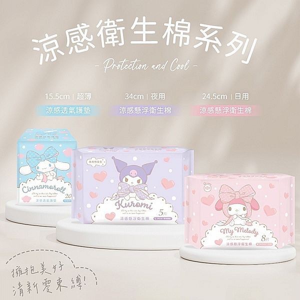 御衣坊 涼感懸浮衛生棉(1包裝) 款式可選【小三美日】DS020603大耳狗喜拿-涼感透氣護墊(20片)|酷洛米-涼感懸浮衛生棉(夜用)5片|美樂蒂-涼感懸浮衛生棉(日用)8片Feminine Care小三美日