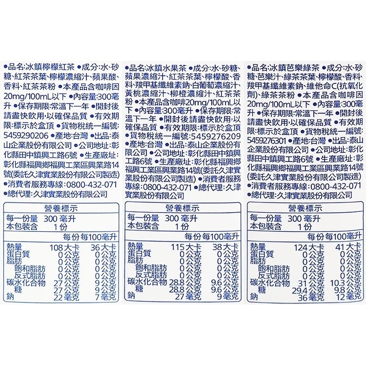 泰山 冰鎮檸檬紅茶 / 水果茶 / 芭樂綠茶 (300mlx6入) 飲品 飲料 露營 野餐【小三美日】DS027089冰鎮檸檬紅茶300ml*6入|冰鎮水果茶300ml*6入|冰鎮芭樂綠茶300ml*6入Tea & Tea Bags小三美日