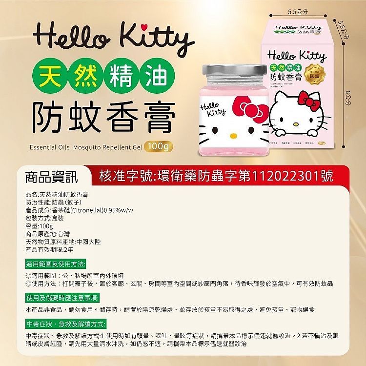 御衣坊 Hello Kitty天然精油防蚊香膏(100g) 守護夏日 長效驅蚊 無懼叮咬【小三美日】DS025397單一Insect Repellents小三美日