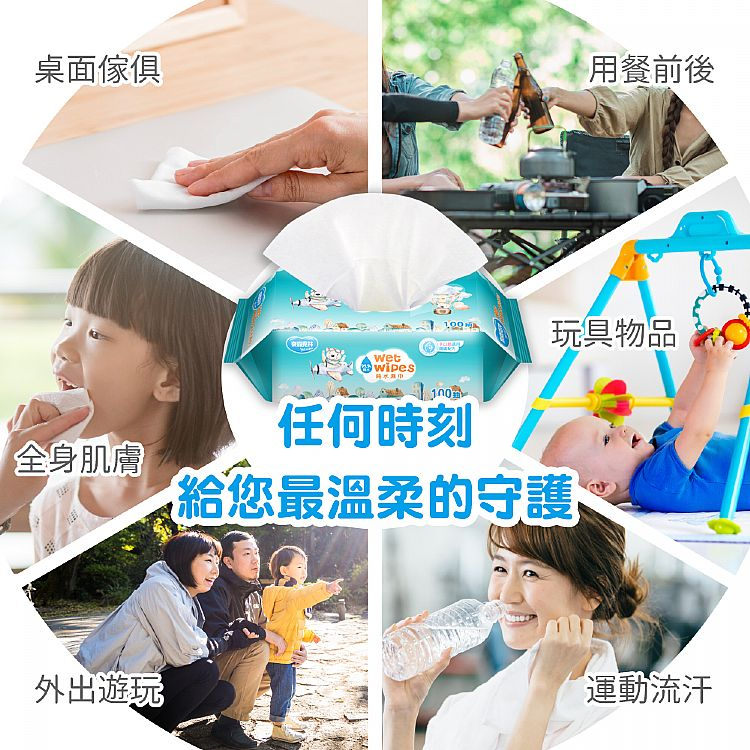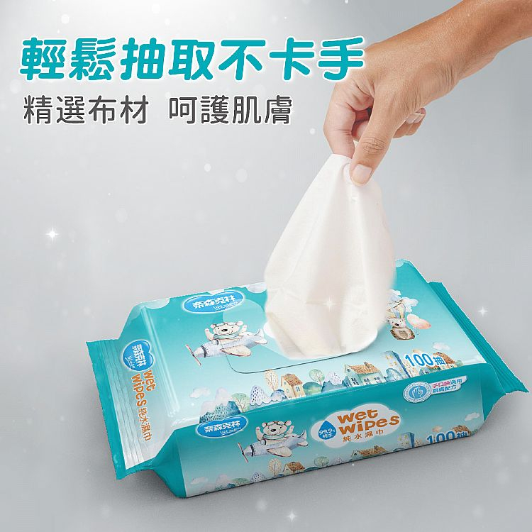 奈森克林 純水濕巾100抽 飛機熊(手口臉適用) 【小三美日】DS014112單一Wipes小三美日