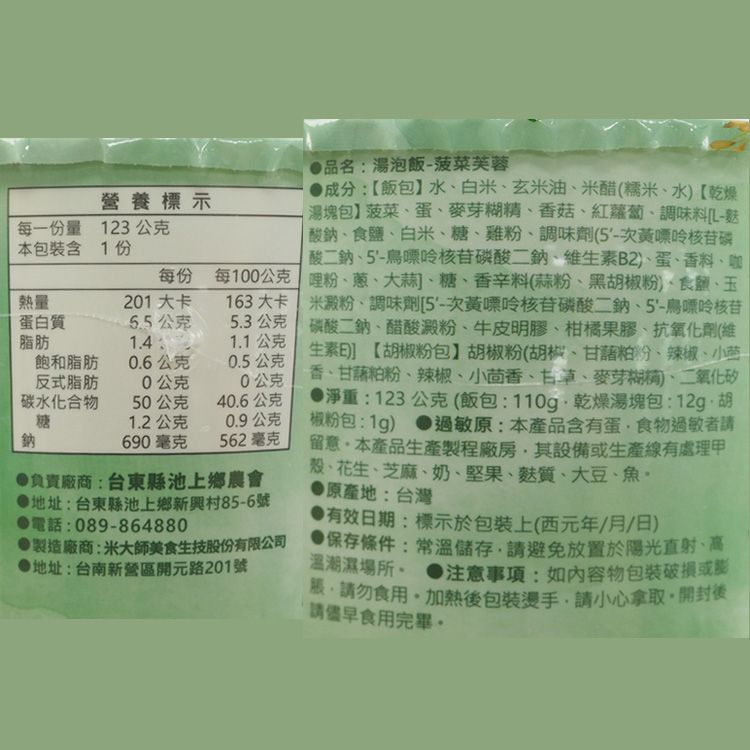 台東池上鄉農會 x 米大師 湯泡飯 1碗裝 露營 脆爆紅品 即食 米飯 泡麵 沖泡粥 粥【小三美日】DS026238菠菜芙蓉|鮮蔬羅宋Instant Rice & Porridge小三美日