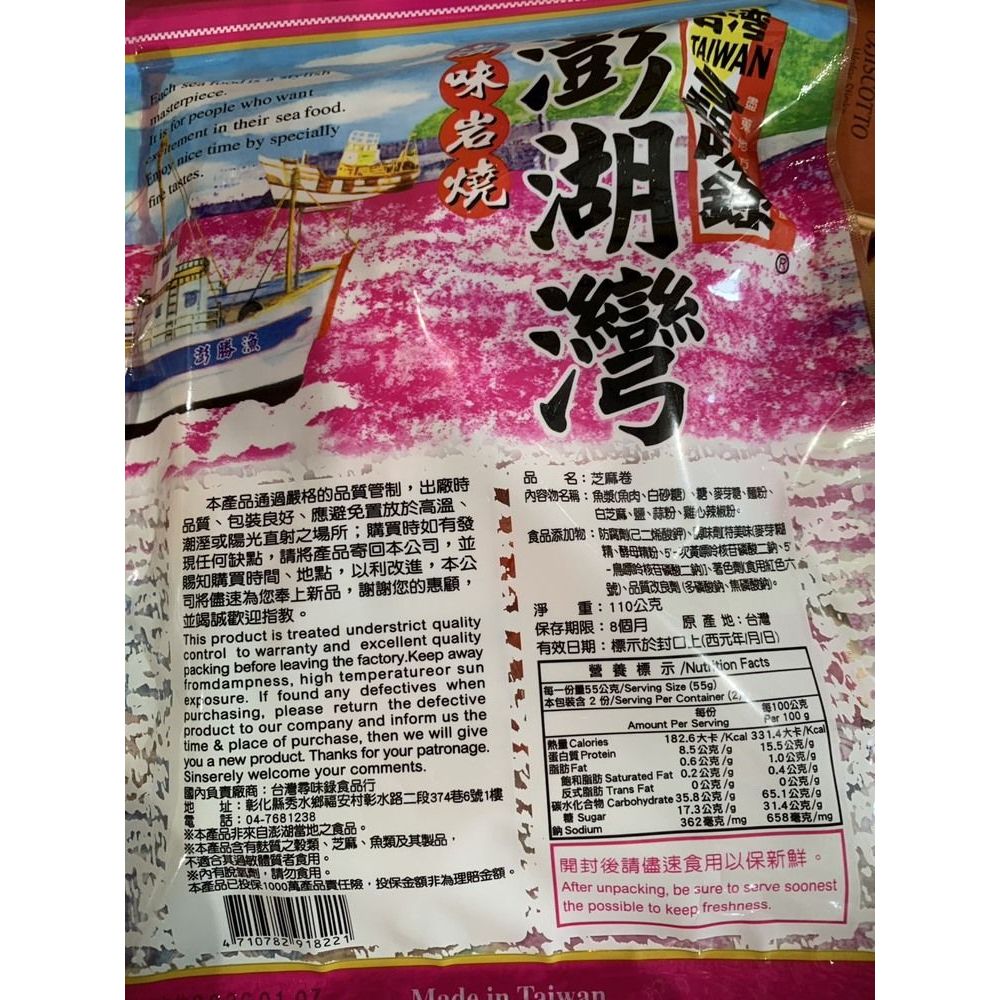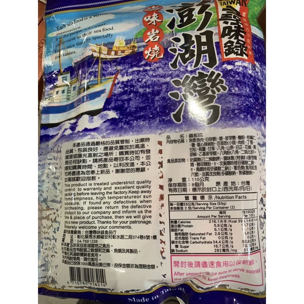 台灣尋味錄 澎湖灣 紅片/蜜沙茶/白板條/鐵板燒/芝麻捲/鱈魚香絲(1包入) 款式可選【小三美日】D918177芝麻捲110g|紅片80g|蜜沙茶110g|白板條80g|鐵板燒110g|鱈魚香絲80gDried Snacks小三美日