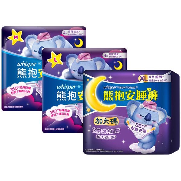 好自在 熊抱安睡褲(4片) 衛生棉褲 衛生棉 晚安褲 褲型衛生棉 夜用衛生棉 私密 生理用品【小三美日】D836982M|L|XLFeminine Care小三美日