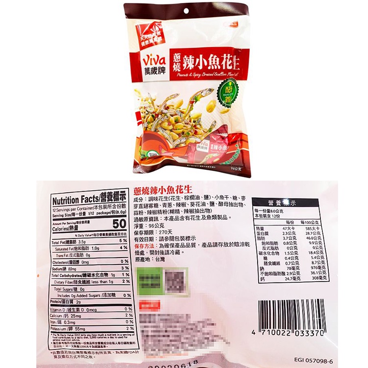 萬歲牌 蔥燒辣小魚花生(8gx12包)/杏仁小魚(8gx10包)【小三美日】DS004925蔥燒辣小魚花生96g(8gx12包/袋)|杏仁小魚80g(8gx10包/袋)Dried Snacks小三美日