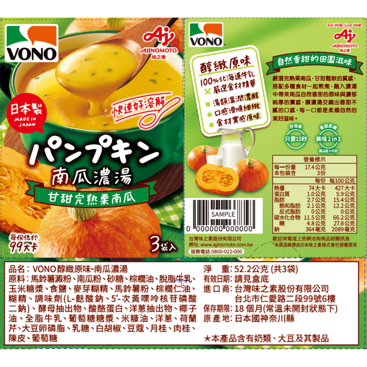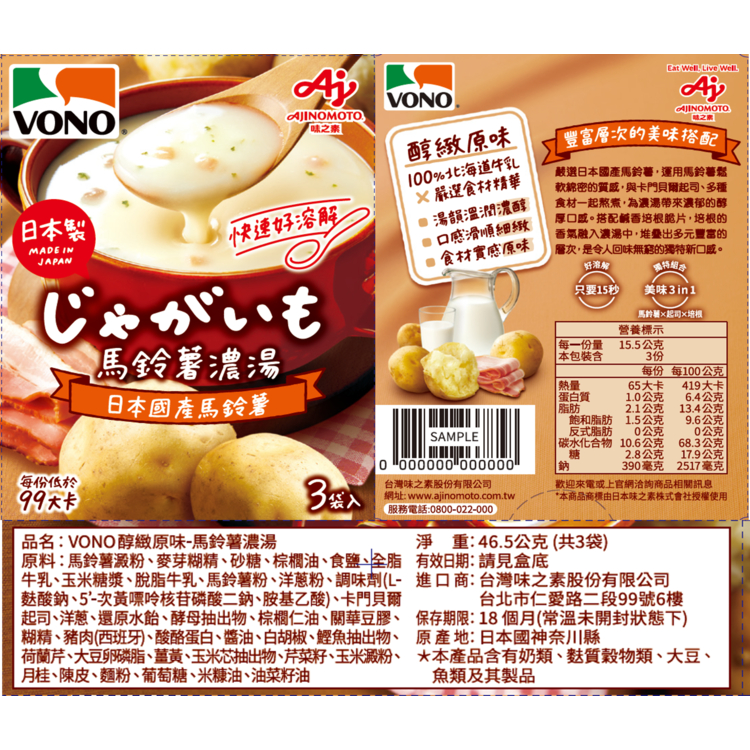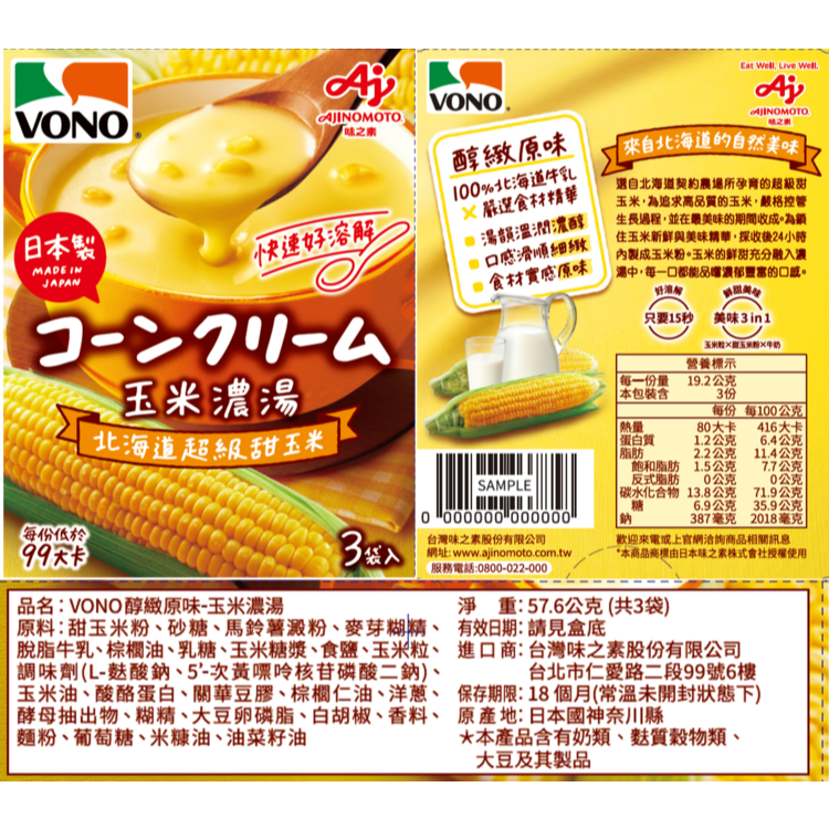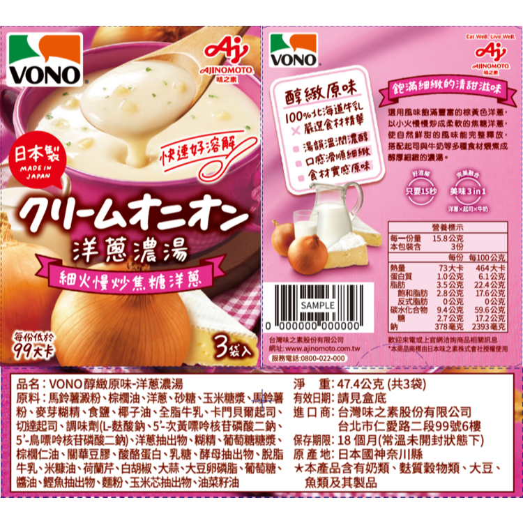 VONO 醇緻原味濃湯(3袋入) 多款可選 宵夜 露營 懶人必備 玉米濃湯 起司濃湯 南瓜濃湯【小三美日】D037858玉米濃湯57.6g(盒裝)|南瓜濃湯52.2g(盒裝)|起司濃湯54g(盒裝)|洋蔥濃湯47.4g(盒裝)|馬鈴薯濃湯46.5g(盒裝)Stock, Gravy & Instant Soup小三美日