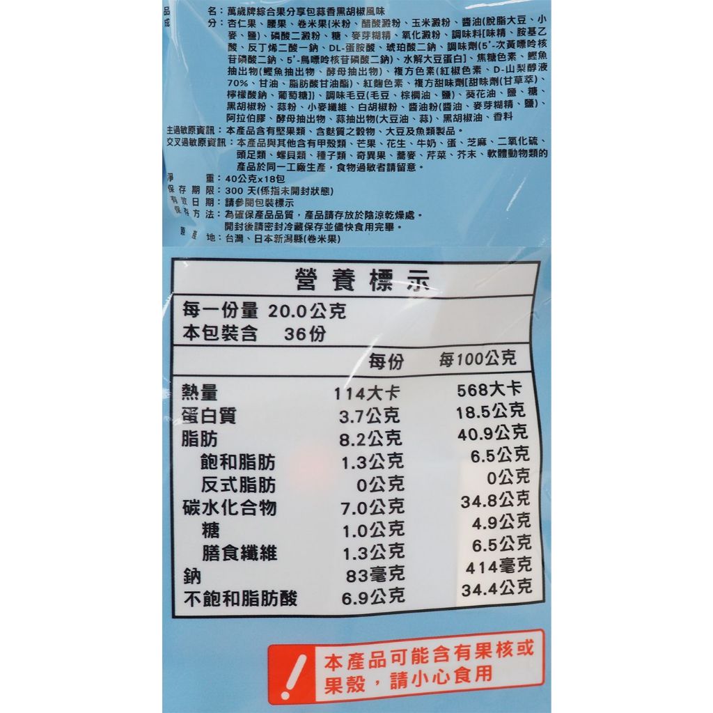 萬歲牌 綜合果 分享包 (蒜香黑胡椒風味) 40gx18入 好市多 熱銷 堅果 零食 伴手禮【小三美日】DS026239單一Nuts小三美日