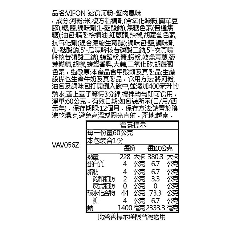 VIFON 速食河粉 蟹肉風味(60g)【小三美日】 DS015498單一Instant Noodles小三美日