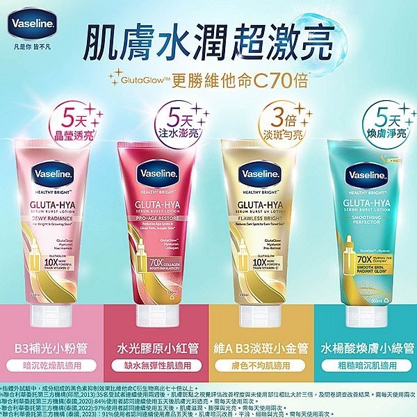 Vaseline 凡士林 精華凝乳 (1瓶) 淡斑勻亮 肌亮水潤 水光膠原 水楊酸煥膚 乳液【小三美日】DS014066淡斑勻亮330ml|肌亮水潤330ml|水光膠原330ml|水楊酸煥膚300mlBody Cream, Lotion & Butter小三美日