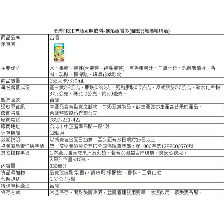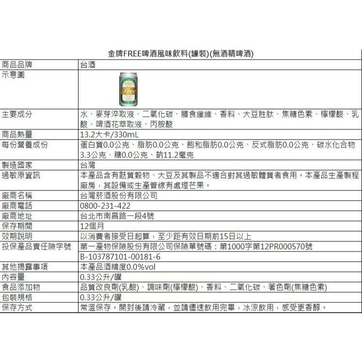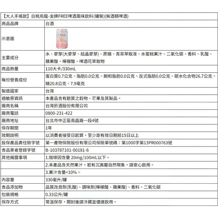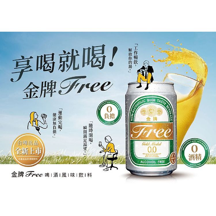 台灣菸酒 金牌FREE 啤酒風味 飲料 (330ml) 零酒精 無酒精啤酒 低熱量 飲品【小三美日】DS025247原味330ml|朝沁百香多330ml|白桃烏龍330mlCarbonated Drinks & Tonics小三美日
