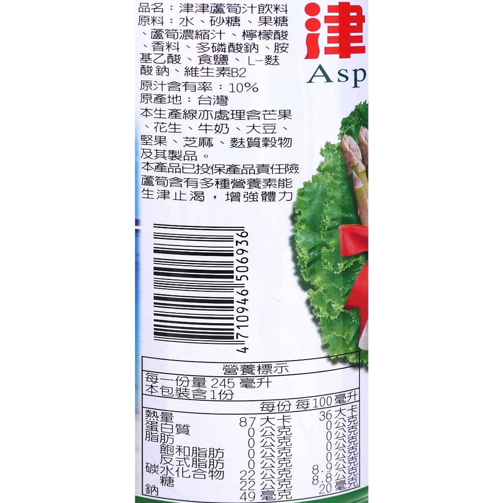 津津 蘆筍汁 (245ml) 蘆筍 消暑 古早味 罐裝 飲料 清涼 退火 蔬果汁 津津蘆筍汁【小三美日】DS026166單一Juice & Juice Vinegar小三美日