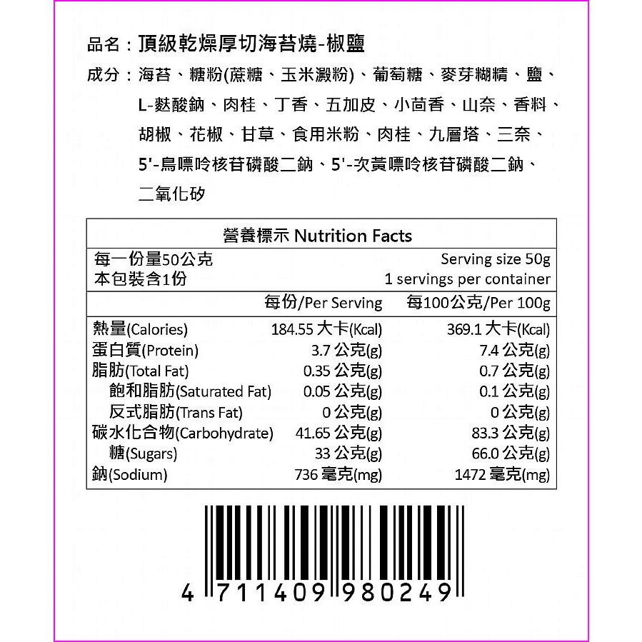 TOPDRY 頂級乾燥 厚切海苔燒(50g) 款式可選 零食 零嘴【小三美日】DS014199椒鹽|原味|梅子|川辣Seaweed小三美日