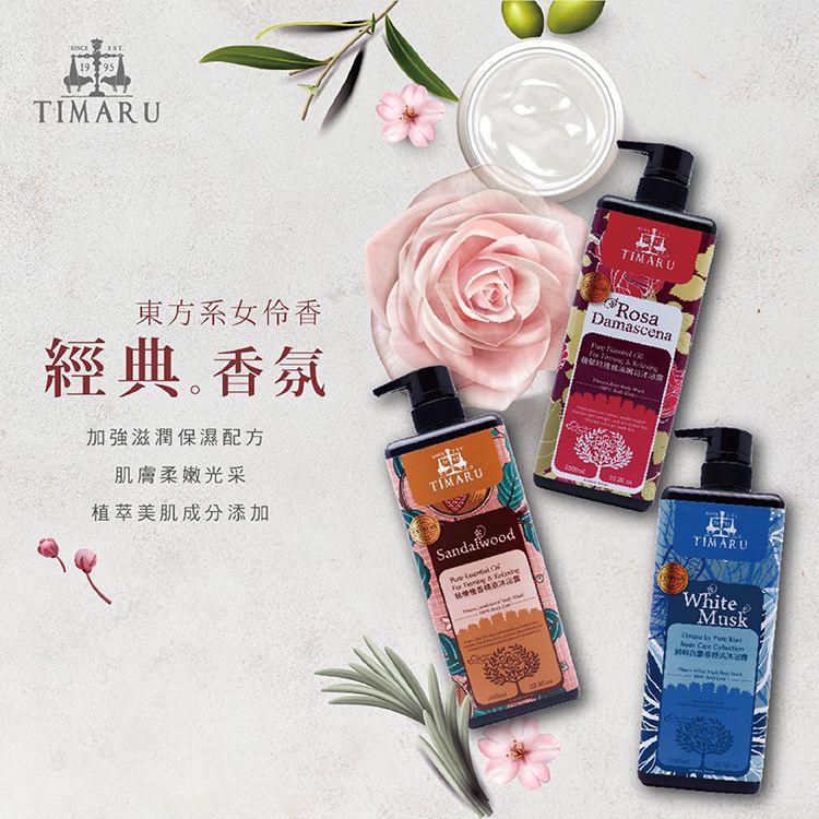 Timaru 堤瑪露 沐浴露(1000ml) 黑方瓶升級版 【小三美日】 DS009740純粹白麝香舒活|馥郁玫瑰精油嫩白|秘煉檀香精油Body Wash & Soap小三美日