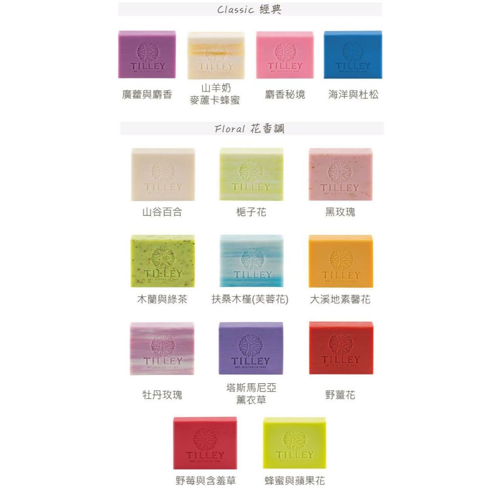 澳洲 Tilley 皇家特莉 經典香皂(100g) 多款可選 緹莉香皂 植粹香氛皂 肥皂 溫和【小三美日】D202001塔斯馬尼亞薰衣草|牡丹玫瑰|粉紅荔枝|扶桑木槿|木蘭與綠茶|罌粟花與百香果|梔子花|檀香與佛手柑|野薑花|廣藿與麝香|黑玫瑰|山谷百合|大溪地素馨花|山羊奶麥蘆卡蜂蜜|波斯無花果|檸檬香桃木|橙香|香芒派對|雪松與苔蘚|海洋與杜松|野莓與含羞草|蜂蜜與蘋果花Body Wash & Soap小三美日