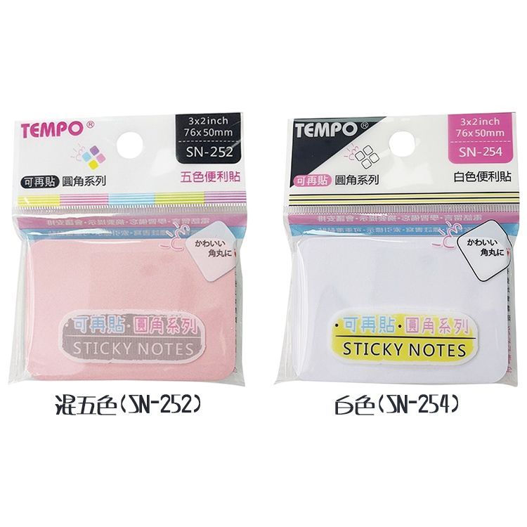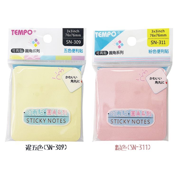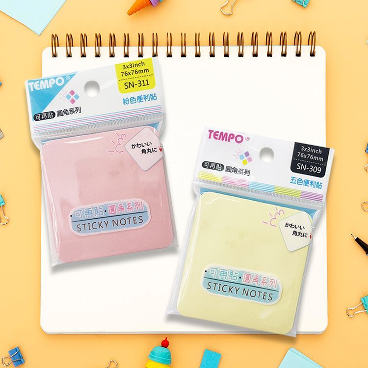 Tempo 節奏 便條紙 便利貼 標準款方格SN-251/全面黏性SN-250/圓角 備忘【小三美日】DS024369x圓角3×3(混五色)SN-309|圓角3×3(粉色)SN-311|圓角3×2(混五色)SN-252|圓角3×2(白色)SN-254|全面黏性SN-250|標準款方格(76*76mm)SN-251Memo & Sticky Notes小三美日