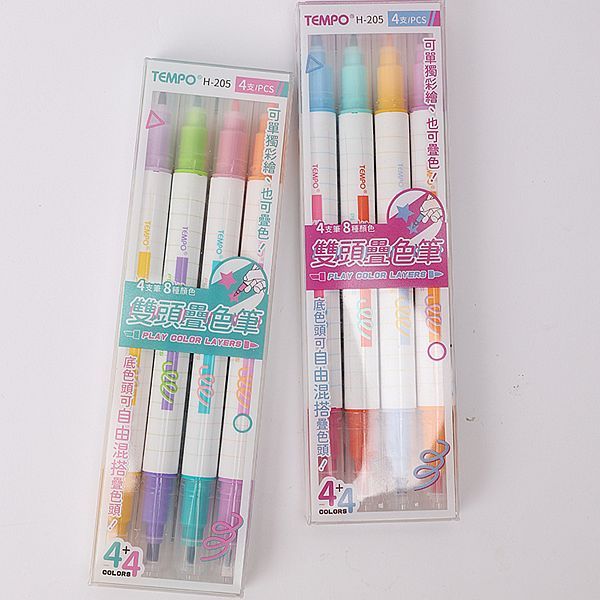 Tempo 節奏 雙頭 疊色筆 H (1組) 螢光筆 文具 筆 記號筆 標記 手帳筆 學生 【小三美日】DS026268H-205-4|H-205-4BHighlighters小三美日