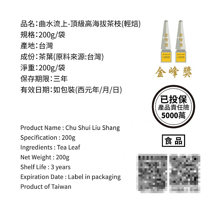 台灣茶人 曲水流上-頂級高海拔茶枝(200g)【小三美日】DS015923單一Tea & Tea Bags小三美日